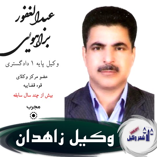 معرفی کوتاه عبدالغفور براهویی وکیل زاهدان  : جناب آقای وکیل براهویی به شماره پروانه وکالت ۸۹۱۷ عضو مرکز وکلای دادگستری ایران با بیش از 16 سال سابقه وکالت وکیل عبدالغفور براهویی، از اعضای رسمی مرکز وکلای قوه قضائیه در زاهدان، یکی از چهره‌های حقوقی فعال در استان سیستان و بلوچستان است که با تکیه بر دانش تخصصی، تجربه میدانی و شناخت عمیق از ساختار قضایی منطقه، خدمات حقوقی متنوع و قابل اعتمادی ارائه می‌دهد.