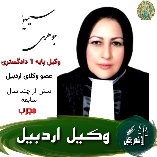 معرفی کوتاه سیمین جوهری وکیل اردبیل : سرکار خانم وکیل به شماره پروانه وکالت ۱۳۷۶۰۳۰۳۰۱۱۱۰۰۱۹ با بیش از 20+ سال سابقه خانم وکیل از وکلای متعهد و متخصص شهر اردبیل است که با عضویت در کانون وکلای استان اردبیل، خدمات حقوقی مستند و متنوعی را در حوزههای حقوقی، کیفری، خانواده و ملکی ارائه میدهد، دفتر وکالت ایشان هم اکنون در اردبیل چهارراه امام است.